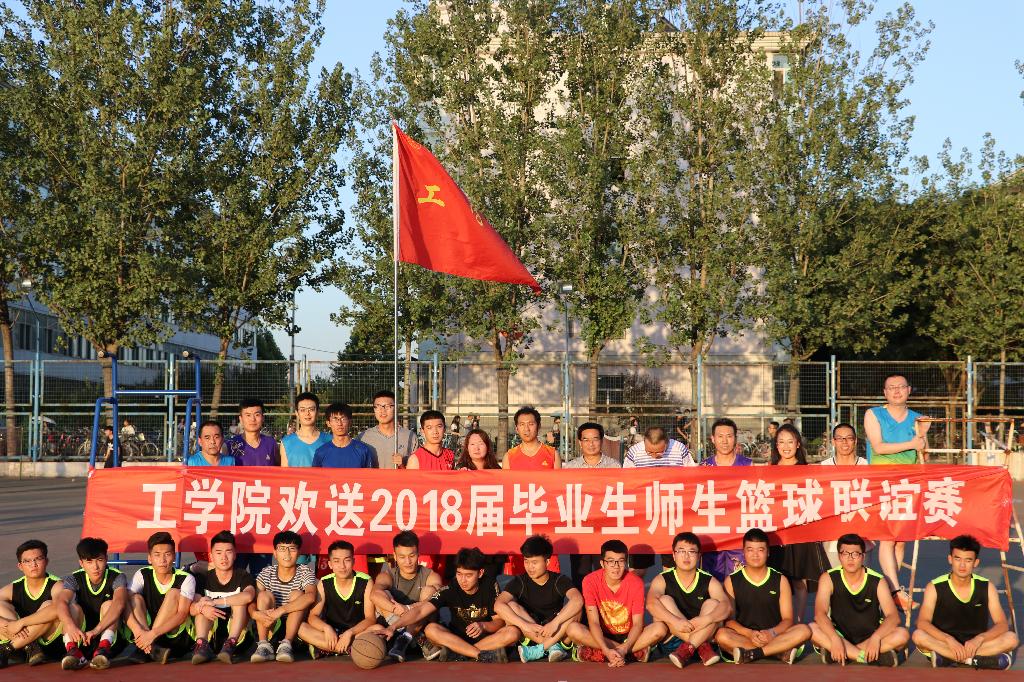 为欢送大四毕业生,为毕业生送去祝福??7日下午六点,工学院于大操场东侧塑胶篮球场举办了欢?018届毕业生师生篮球联谊赛?/P>