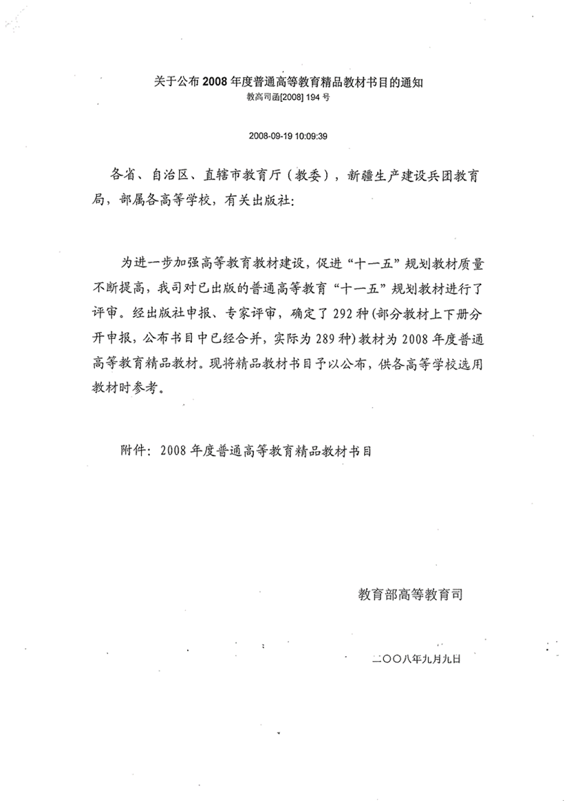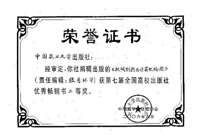 高等农林院校精品课程建设教材、普通高等教育“十一五”国家规划教材《机械制图与计算机制图》获奖及发行证明